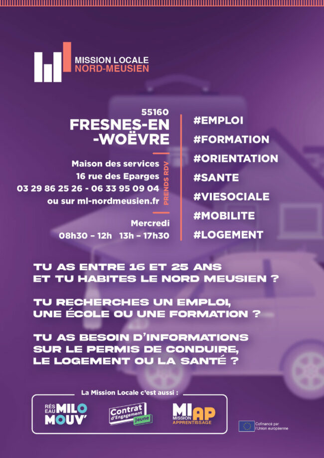 Tu as entre 16 et 25 ans et tu habites le nord meusien ? Tu recherches un emploi, une école, une formation ? Tu as besoin d’informations sur le permis de conduire…